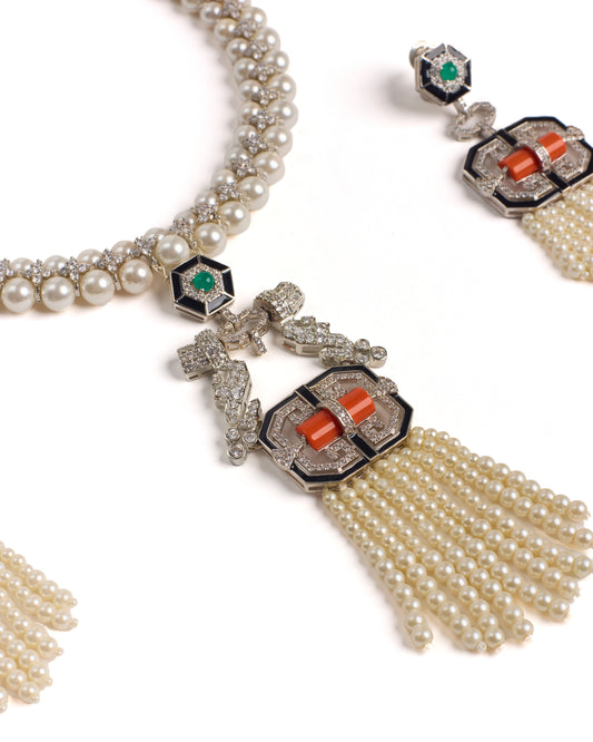 Pearl tassel set (Necklace with earring)