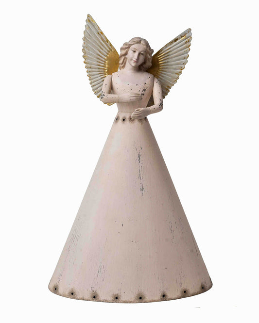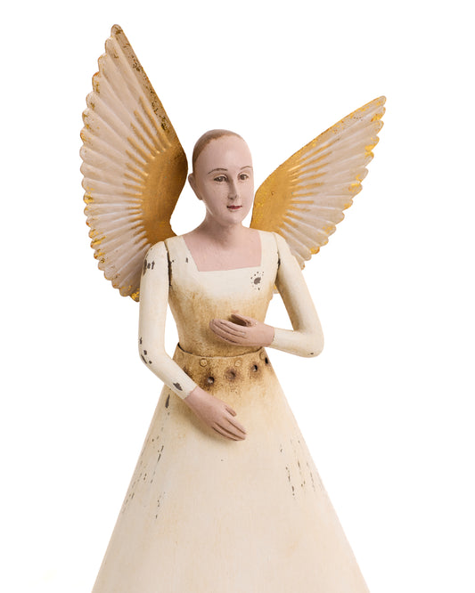 Vintage Wooden Angel Figurine with Gold Accented Wings