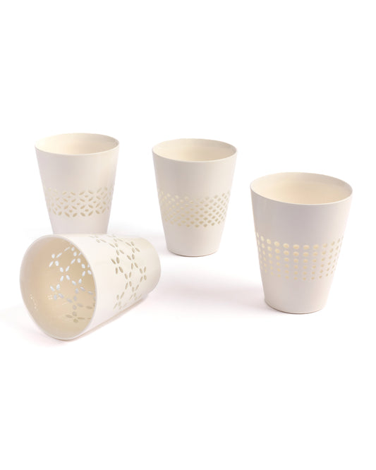 Elegant Set of 4 Glasses with Intricate Cut-Out Detailing