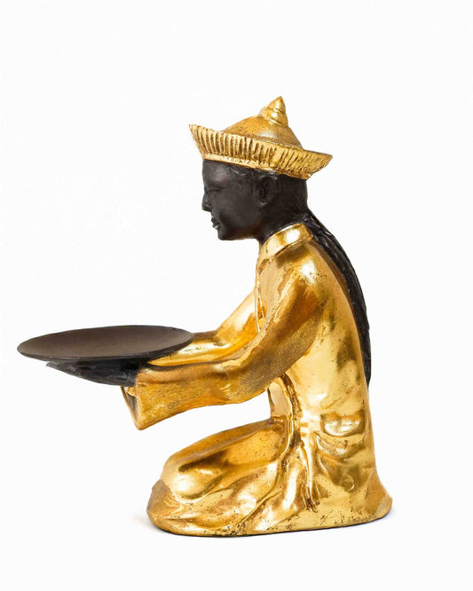 Golden Metallic Statue Of Sitting Asian Man With Tray