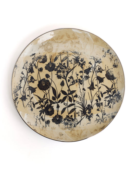 Handcrafted Ash Grey Ceramic Quarter Plate with Vintage Floral Print