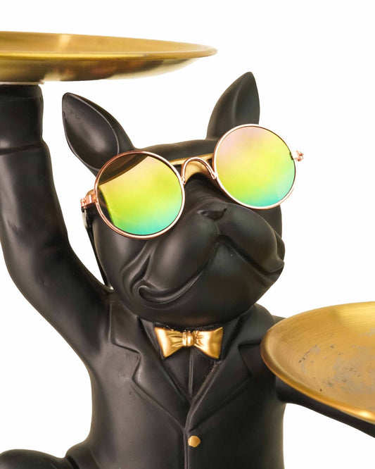 Luxury Bulldog Butler Tray – Quirky Double Dish Decorative Stand in Black & Gold
