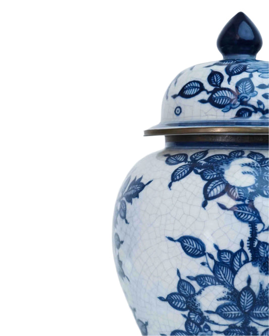 Elegant Chinese Inspired Blue and White Floral Porcelain Jar with Lid