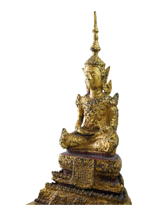 Vintage Hand-Carved Sitting Buddha Sculpture with Original Pedestal