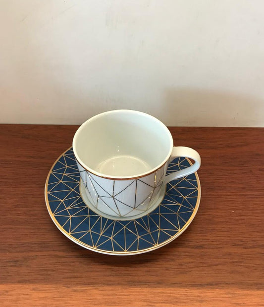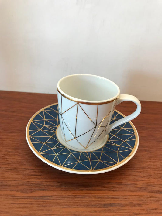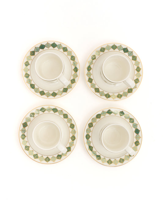 Elegant White Espresso Set with Gold and Green Leaf Design (Set of 4)