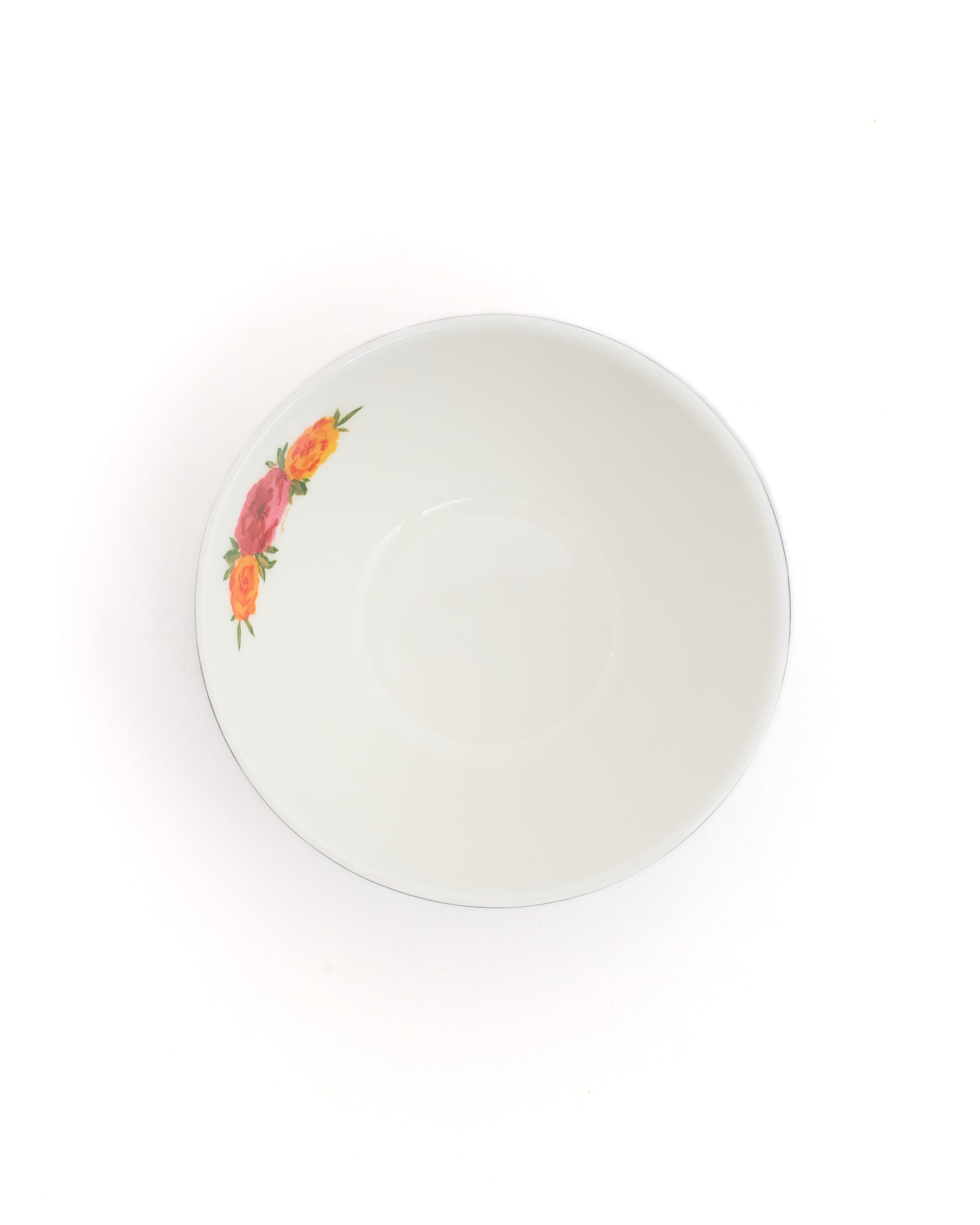Elegant Flower Design Printed Bowl – A Blend of Tradition and Sophistication A beautifully crafted bowl featuring an intricate Flower design print with green and gold leaf patterns. Perfect for serving, decoration, or adding a refined floral touch to your tableware collection.