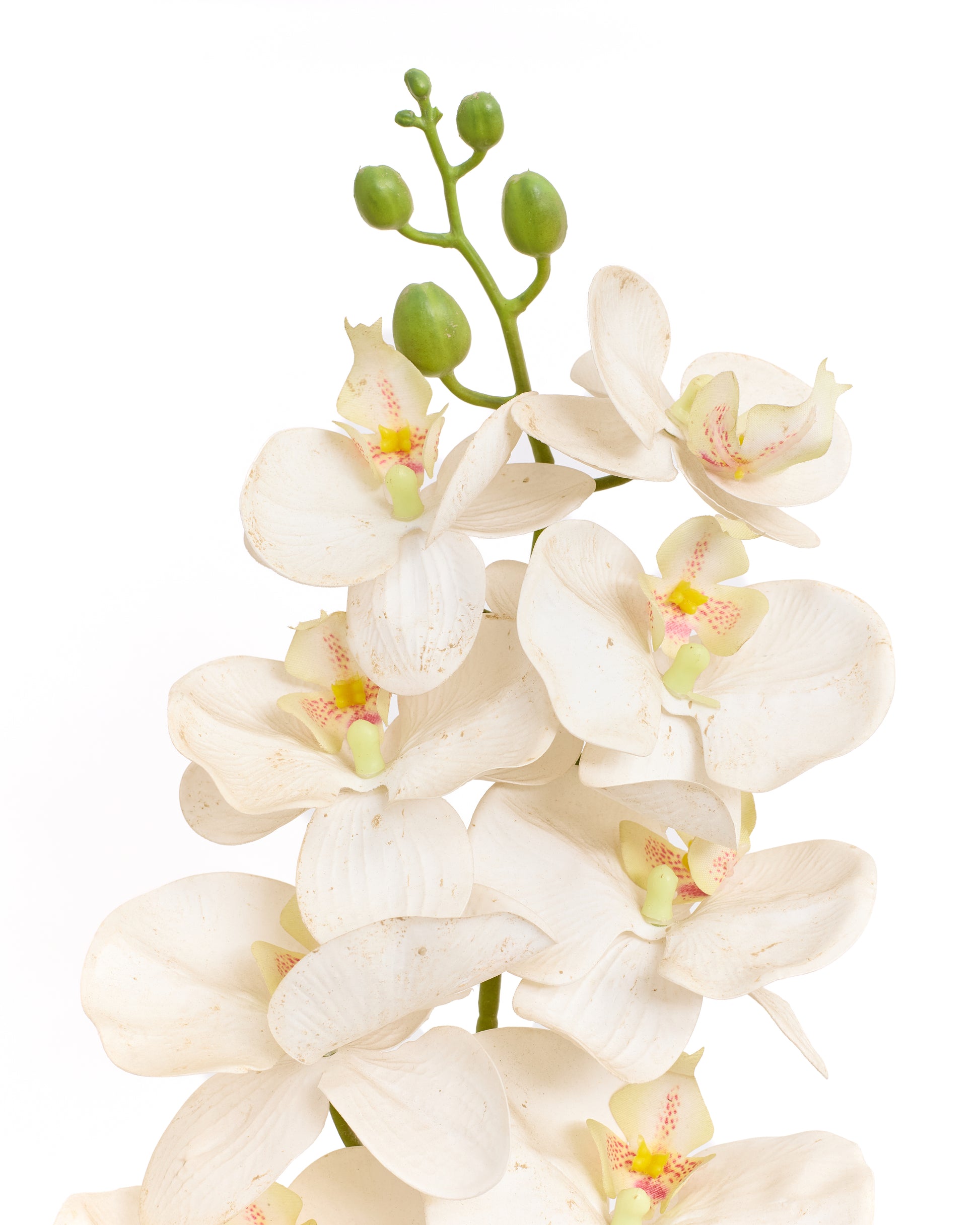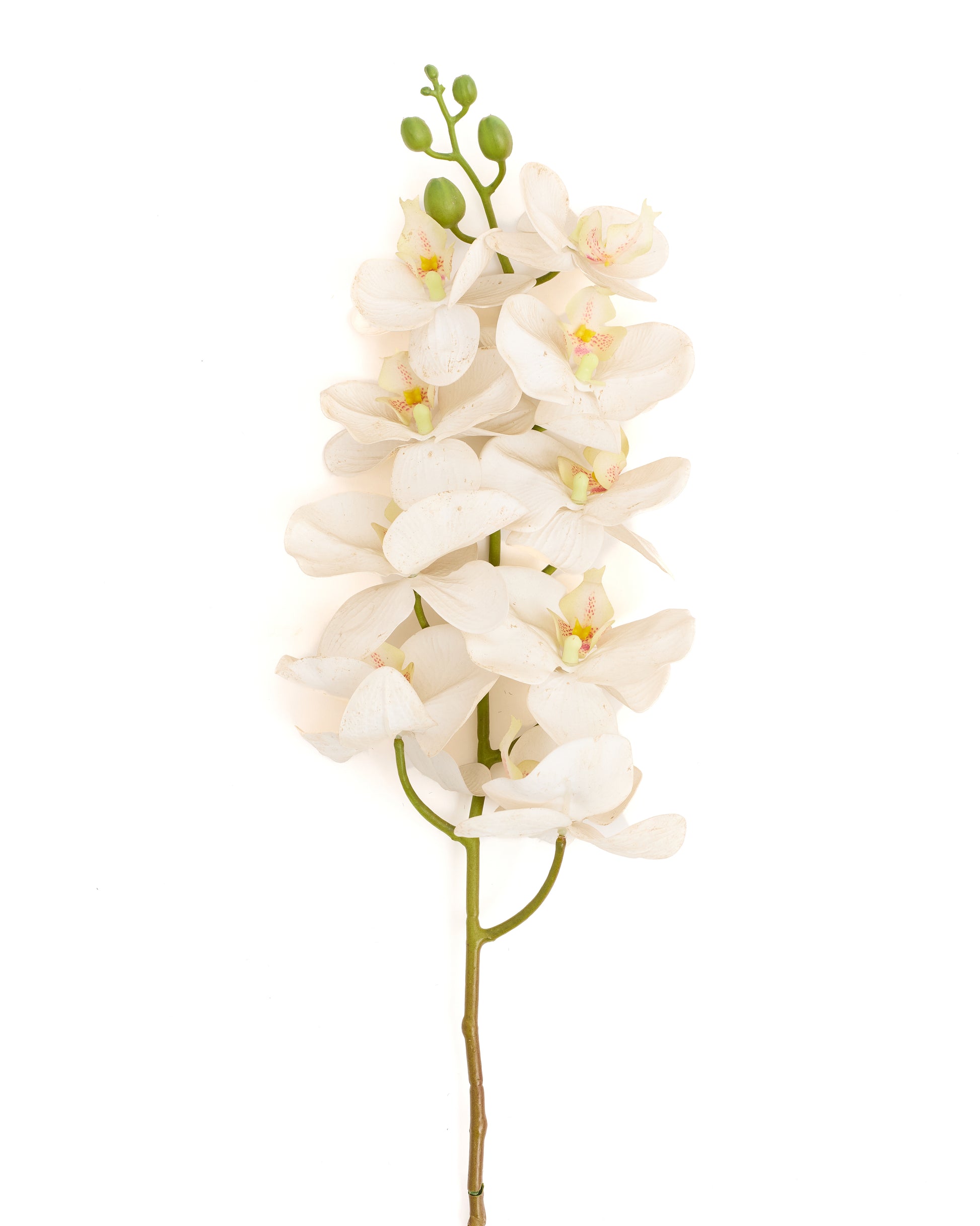 An artificial Cymbidium flower is a lifelike replica of the real bloom, made from materials like silk or plastic. It features layered petals and vibrant colors, often used in home décor, bouquets, and crafts for a long-lasting, maintenance-free floral display.