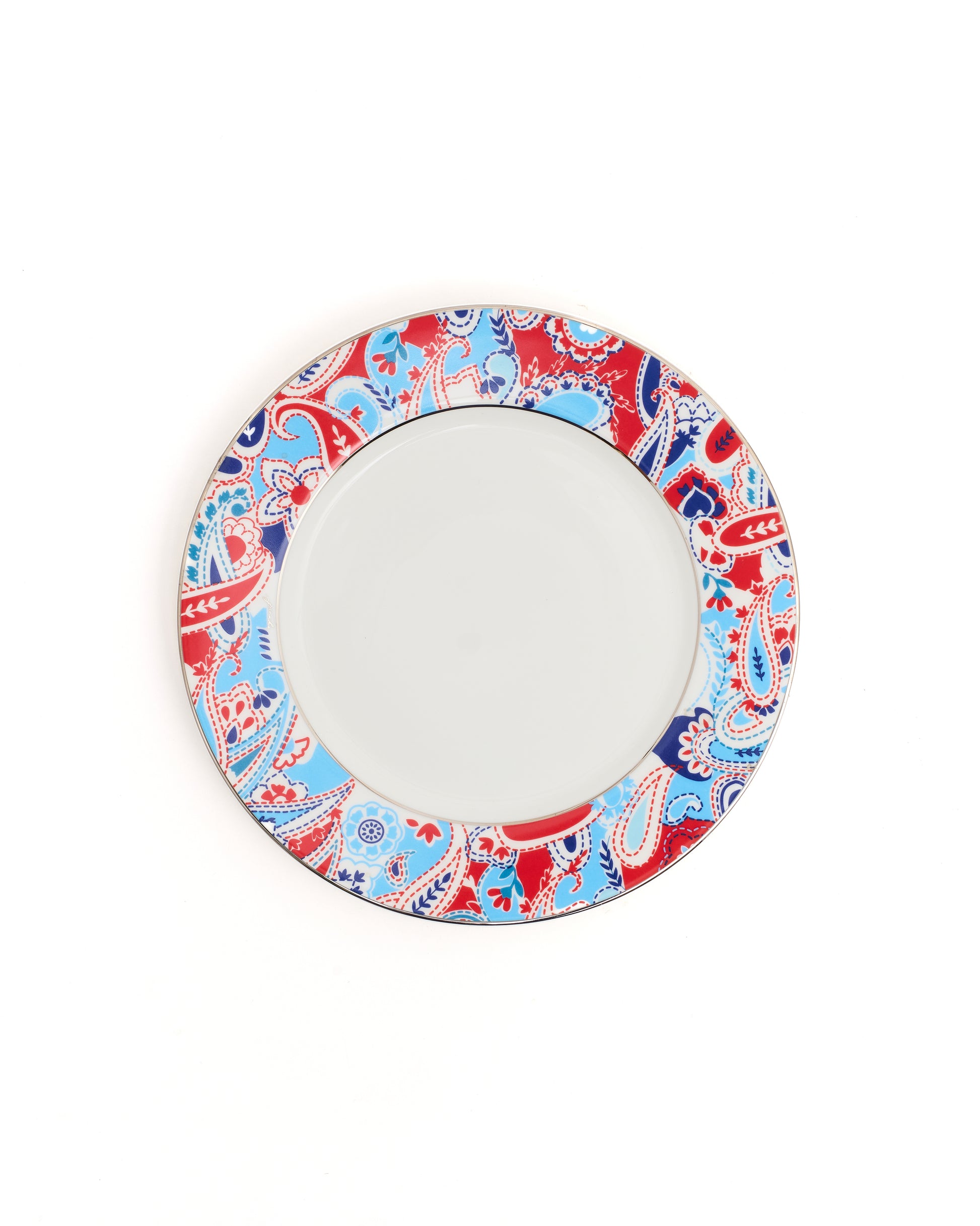 A printed quarter plate features a decorative design inspired by the traditional teardrop-shaped paisley motif. Often used in ceramic tableware, these plates blend classic elegance with artistic flair, making them ideal for both everyday use and special occasions.