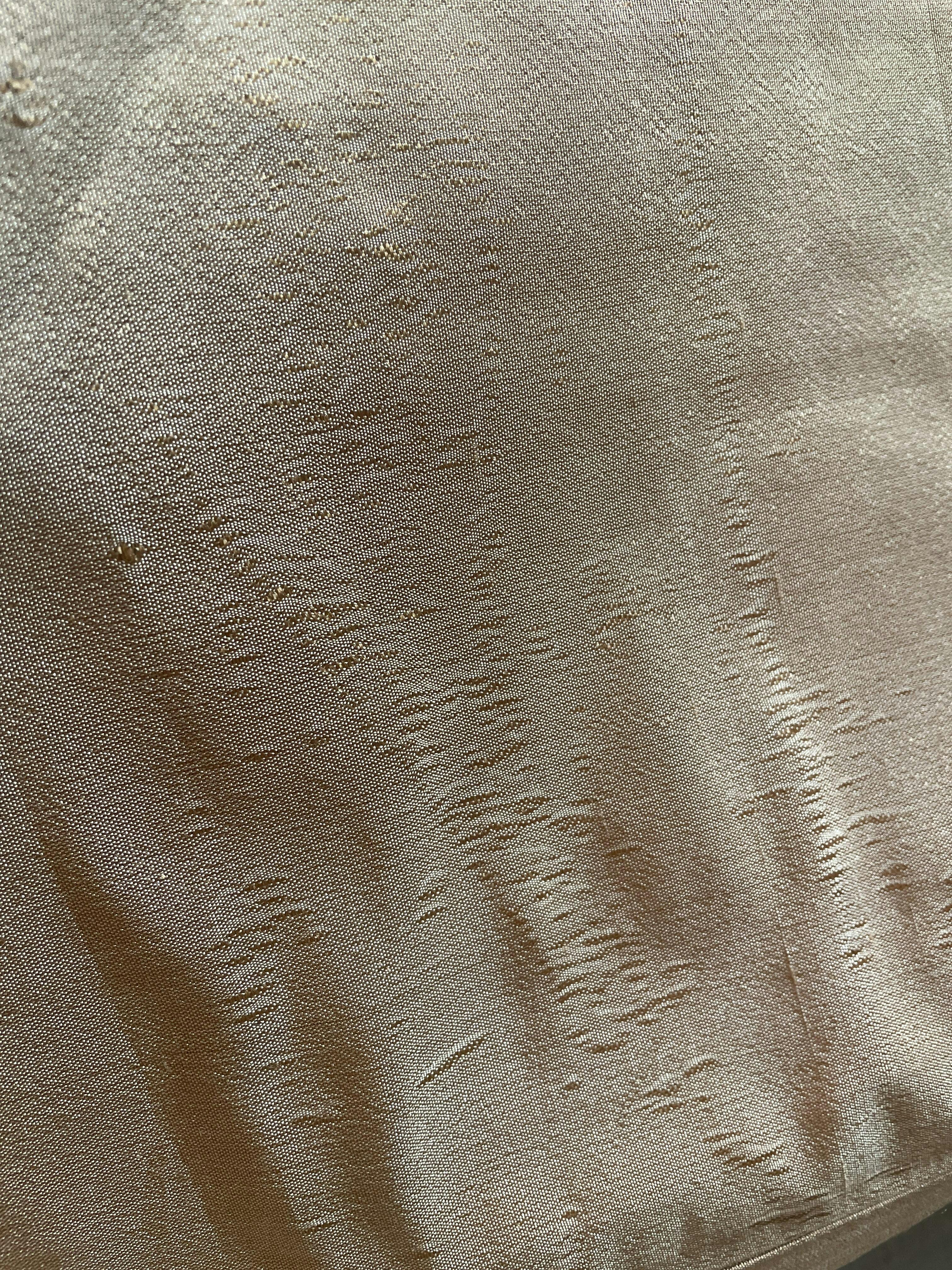 A Beige and Maroon silk velvet cushion cover with a polka dot pattern. The cushion cover is handwoven and have minor imperfections that add to its charm and the material is soft and luxurious, suitable for adding an elegant touch to any room.